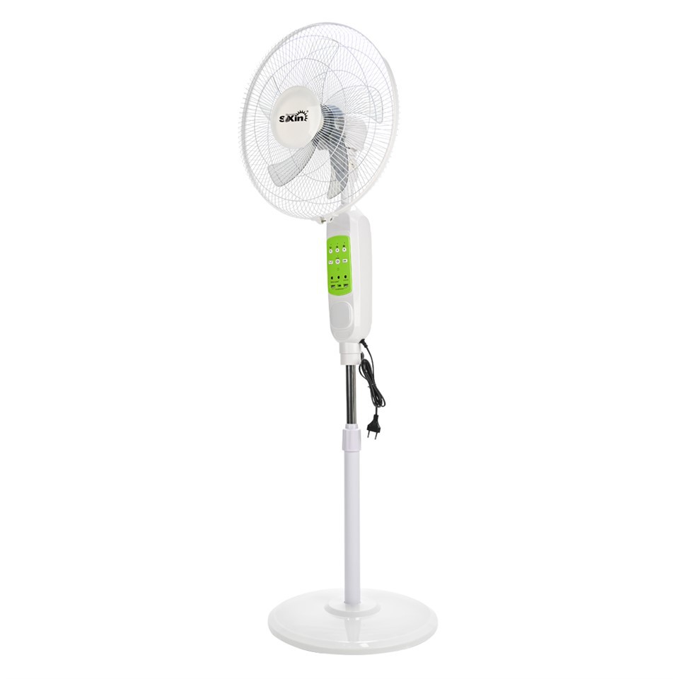SOXin® AC/DC doub devwa Rechargeable Fan, li gen lam fanatik 16 pous. Bati nan bon jan kalite ak byen motè. Baz pa asid plon ki dire lontan rechargeable